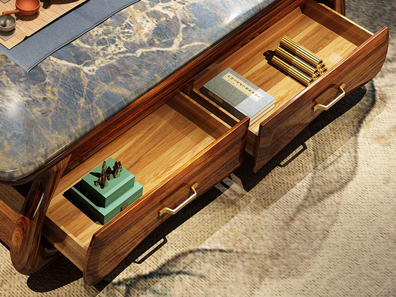 归鹊 新中式 乌金木框架+大理石台面 1.5米茶几