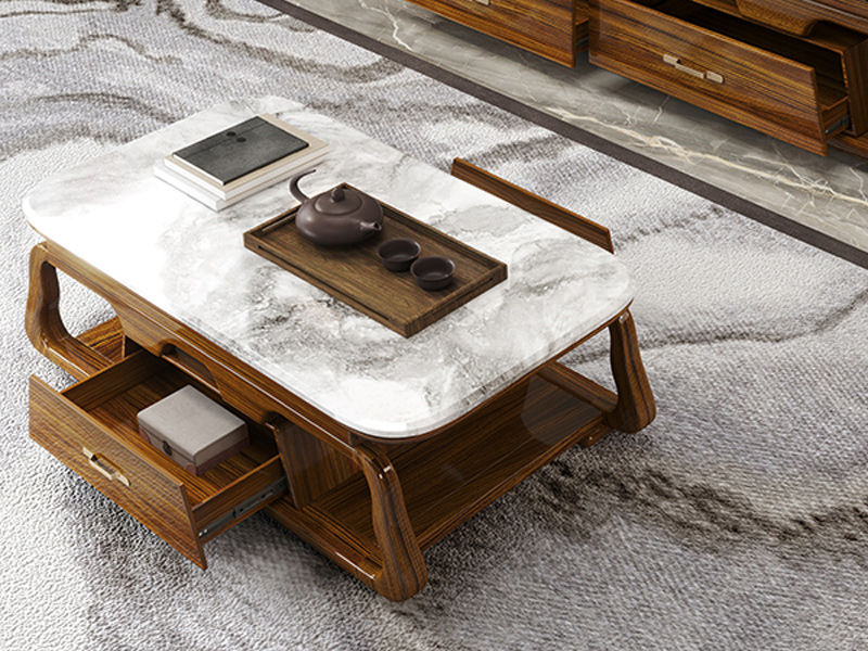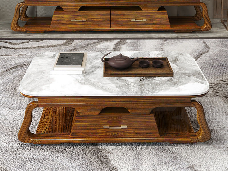 归鹊 新中式 乌金木框架+大理石台面 1.38米茶几¥8313