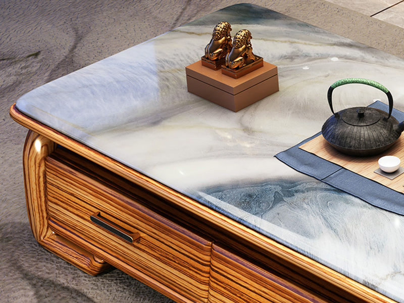 归鹊 新中式 乌金木框架+超晶石台面 1.4米茶几