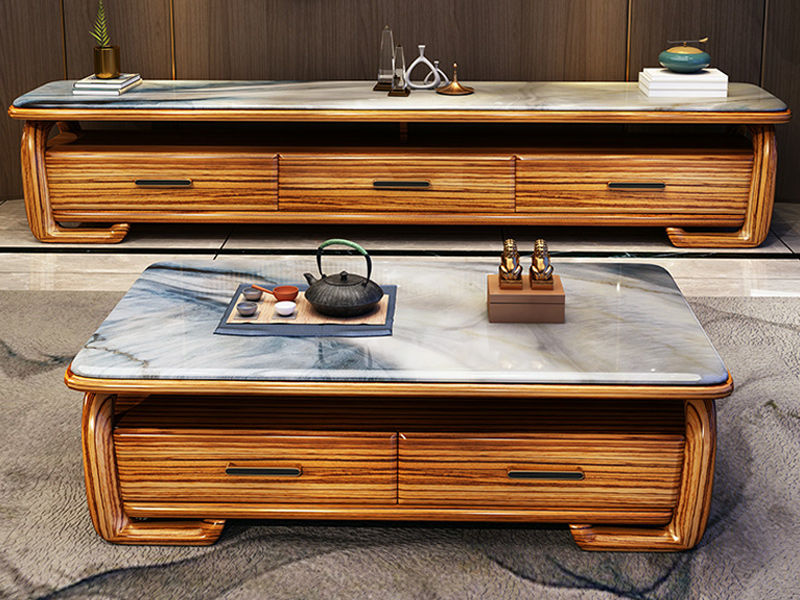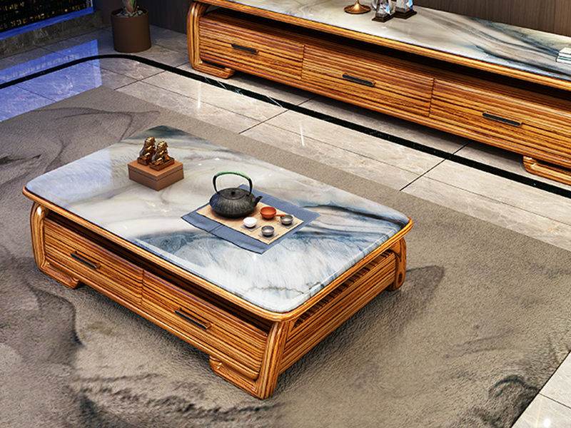 归鹊 新中式 乌金木框架+大理石台面 1.38米茶几¥8313