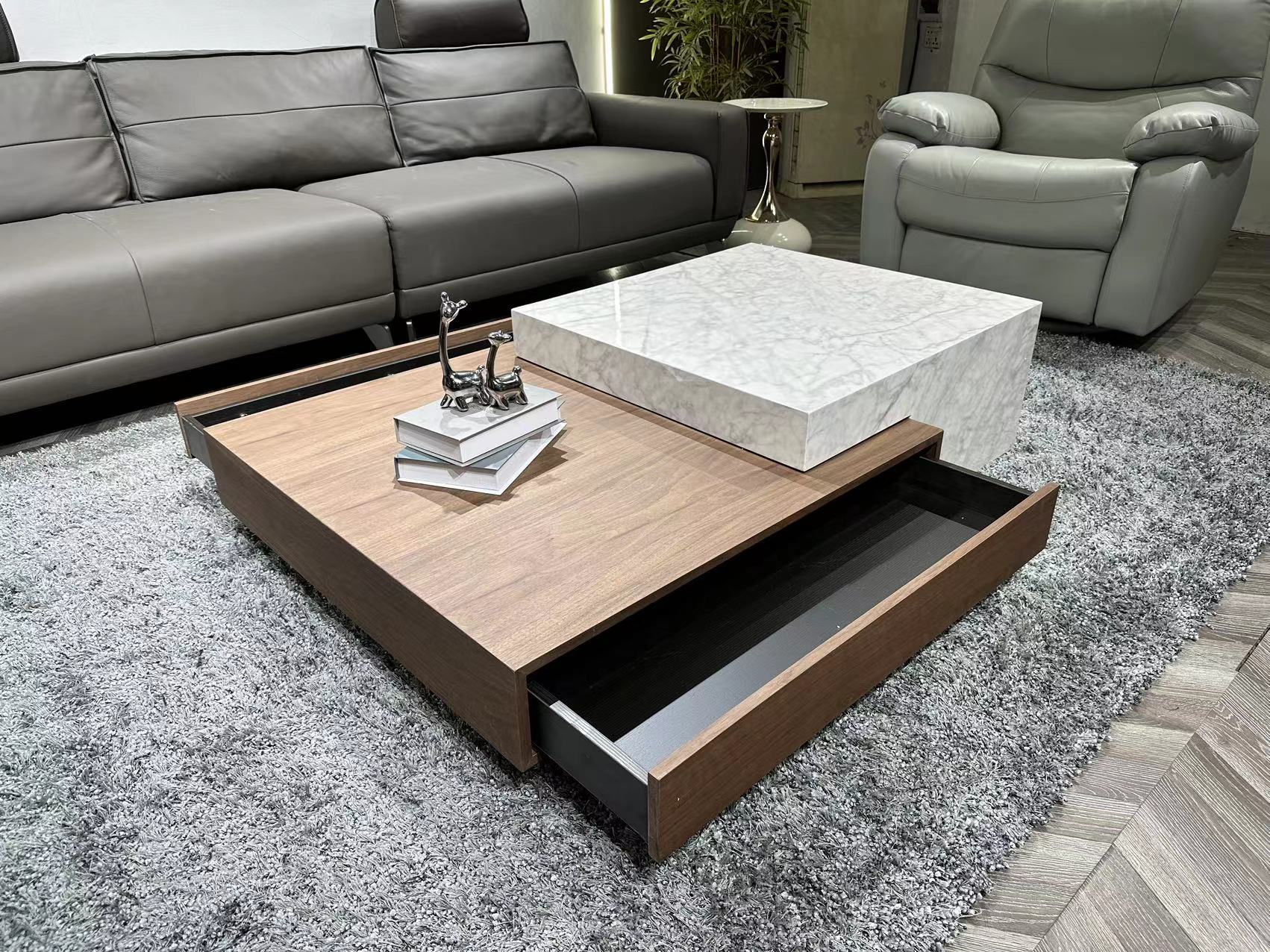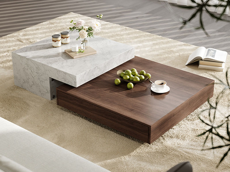 洛萨 极简 环保板+木皮、大理石纸 1.35米组合茶几
