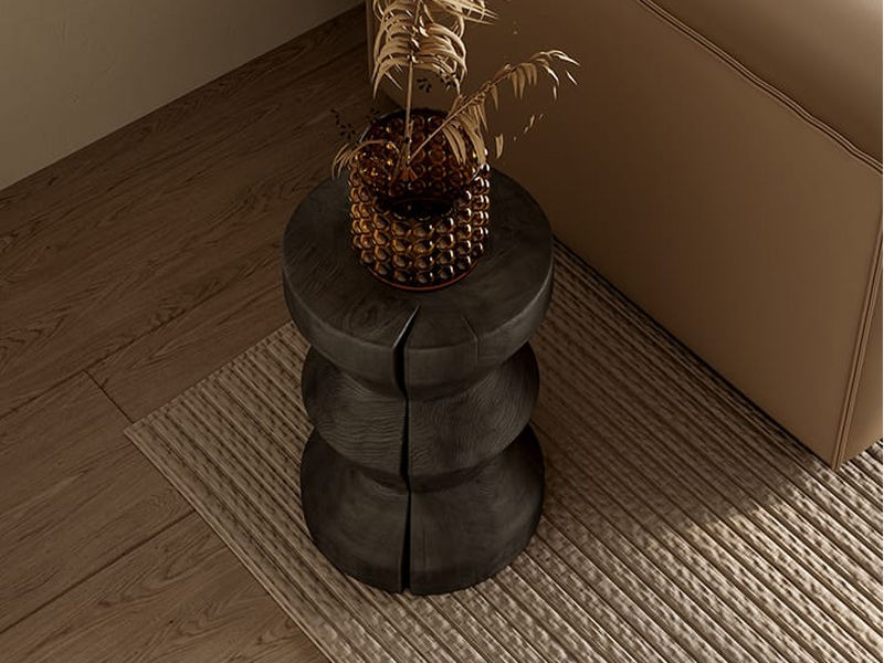 洛萨 极简 E1级中纤板贴尤加利木皮+不锈钢+天然石(爱马仕灰) 0.5米边几¥1501