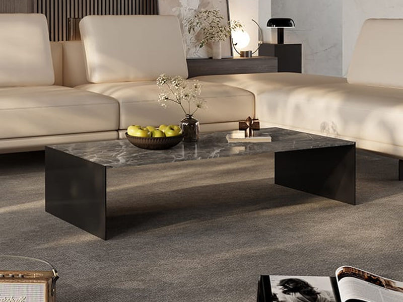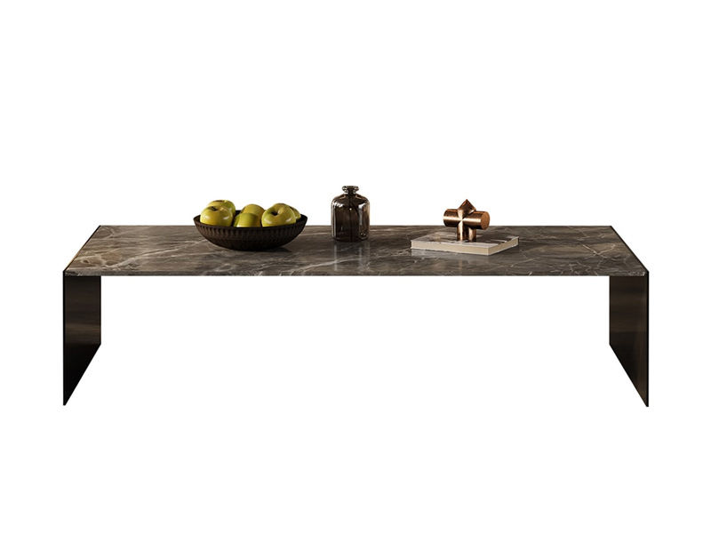 贝斯solo 设计师 网红 极简 不锈钢黑钛+香雪梅 1.2米茶几