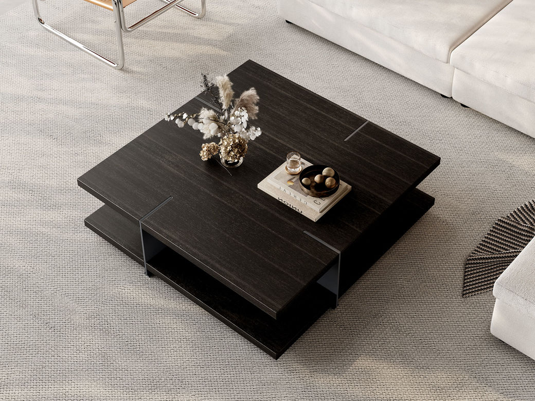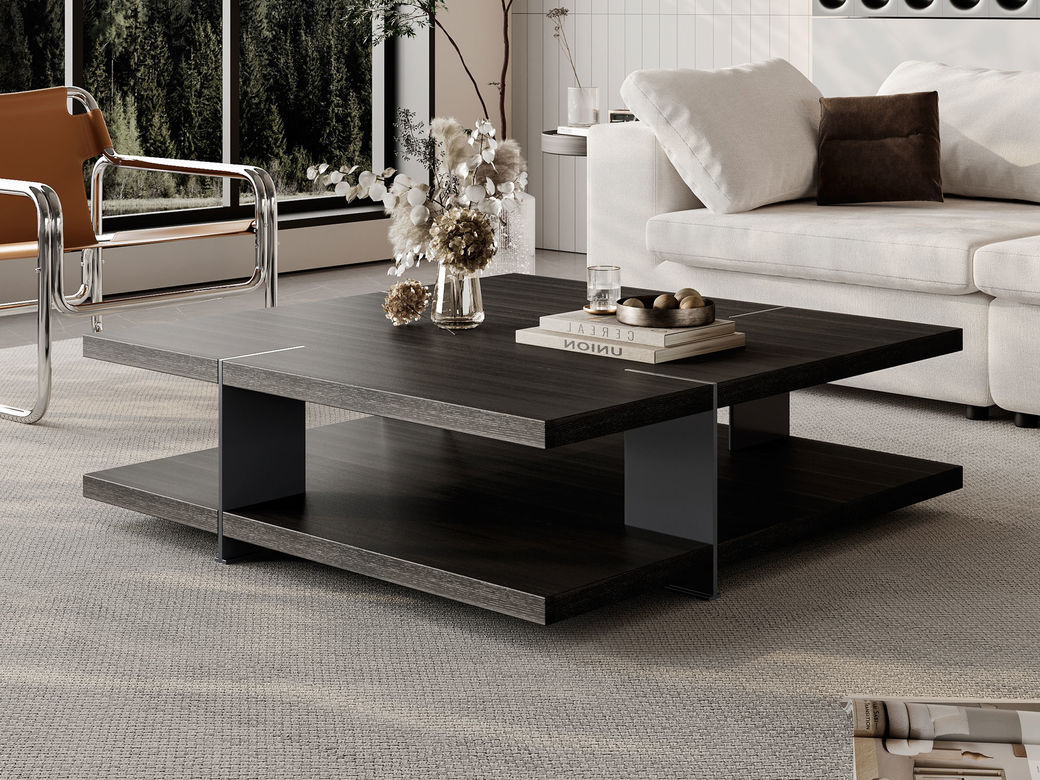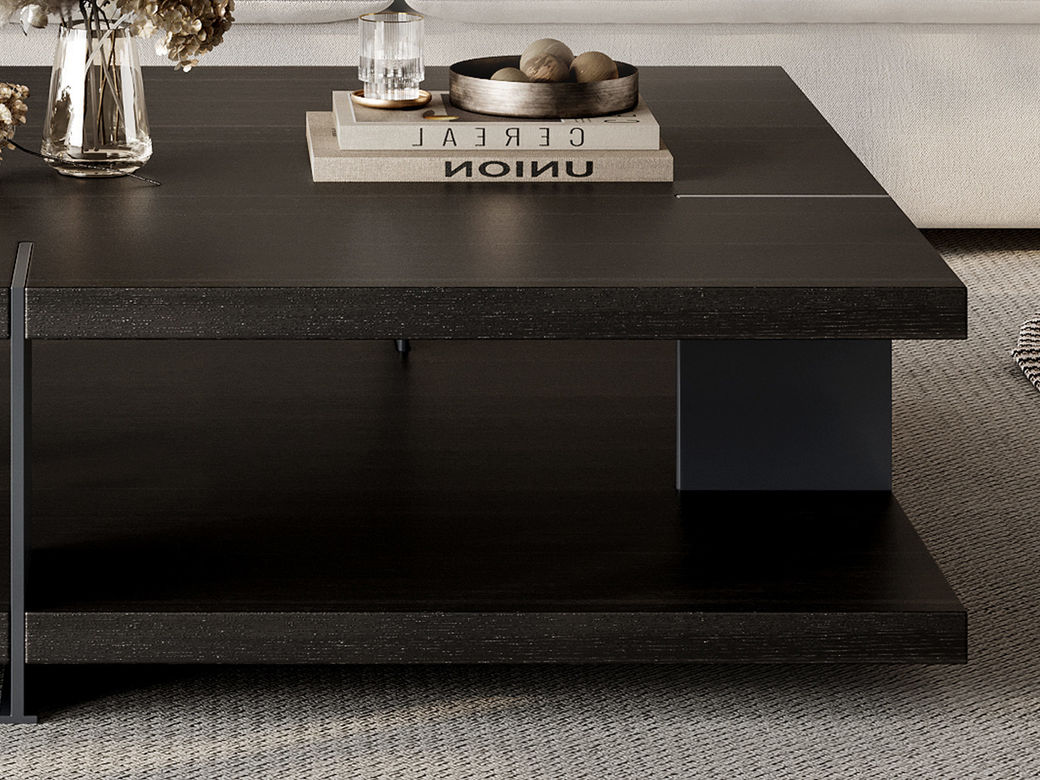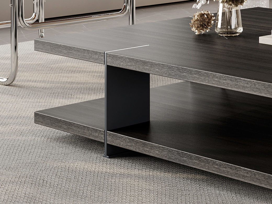 小红书系列 现代 E1纤维板贴烟熏色哑光木皮+天然大理石米洞树脂亮光漆 0.85米组合茶几¥3576