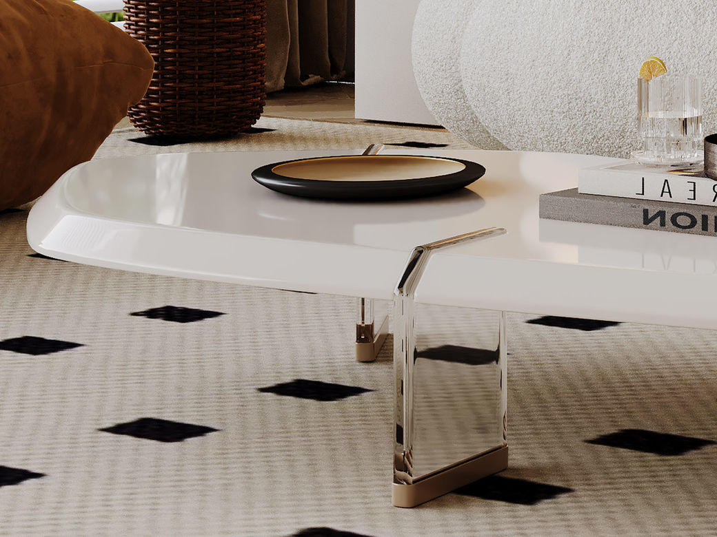 【贝斯solo】洛萨 极简 板木亚克力烤漆不锈钢 1.45米茶几