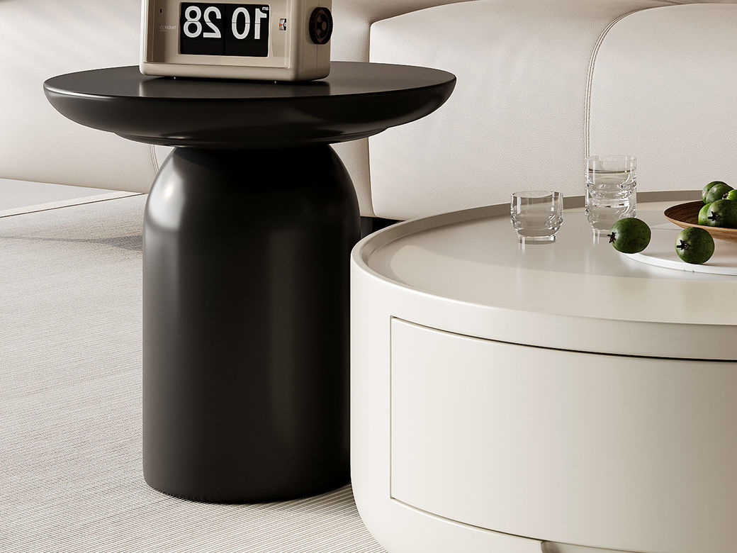 贝斯solo 设计师 网红 极简 白色岩板+五金铁黑色喷砂+环保纤维板 1.1米茶几