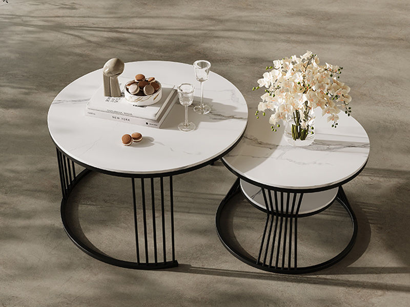 帝幔佧 现代 岩板面+碳素钢脚 0.8米组合茶几