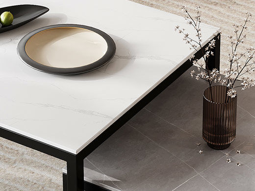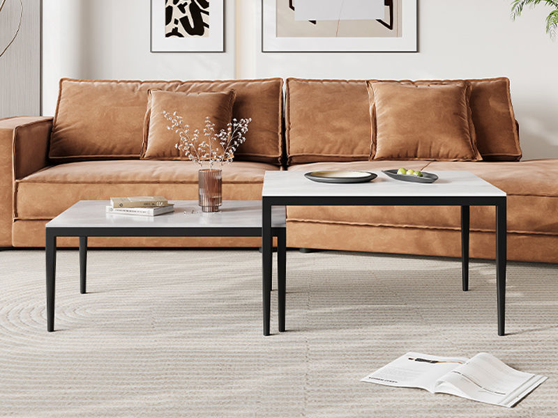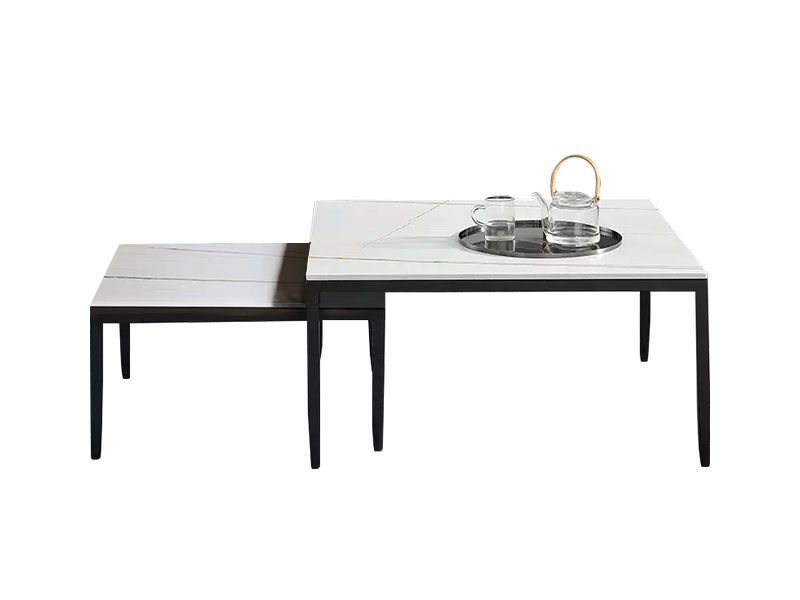 洛萨 极简 岩板面+碳素钢脚 0.8米组合茶几