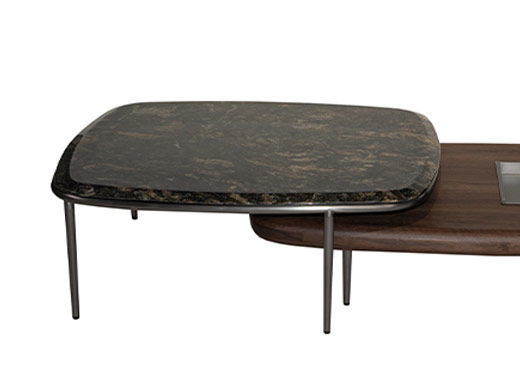 洛萨 极简 E1级中纤板贴尤加利木皮+不锈钢+天然石(爱马仕灰) 0.5米边几