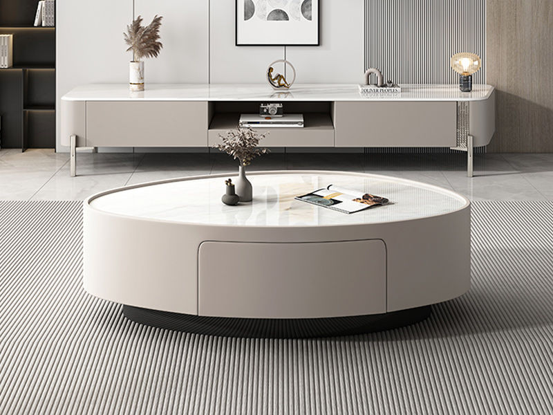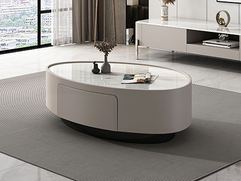 洛萨 极简 微晶石+环保板 0.8米组合茶几