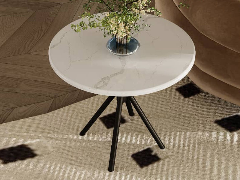 贝斯solo 设计师 网红 极简 不锈钢脚+鱼肚白人造石 0.6米边几
