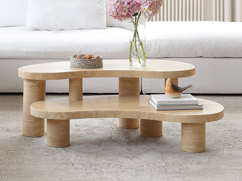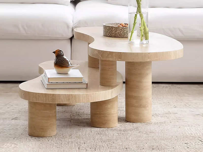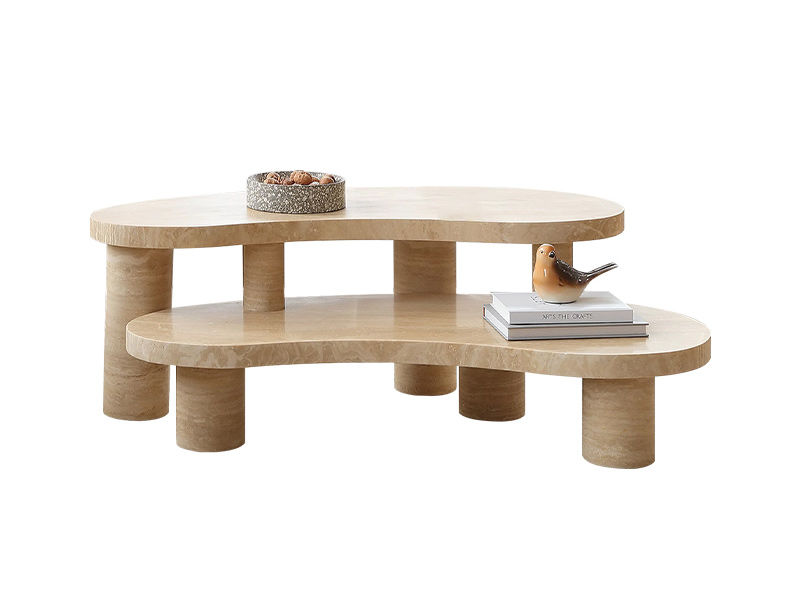 洛萨 极简 天然洞石加厚台面+实心圆柱脚 1.08米组合茶几