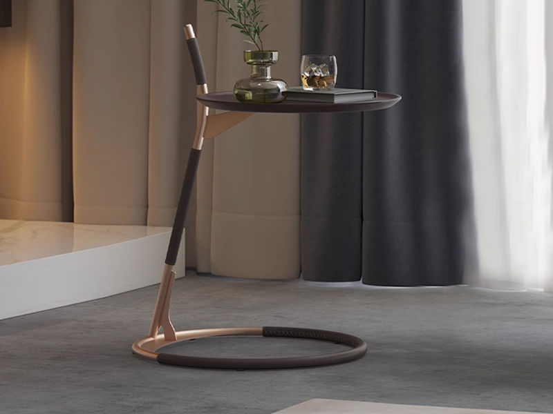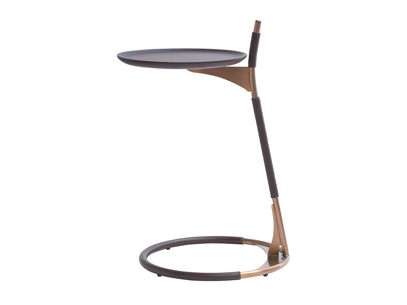 贝斯solo 设计师 网红 极简 马鞍革+铁架+实木台面 0.43米边几¥2075