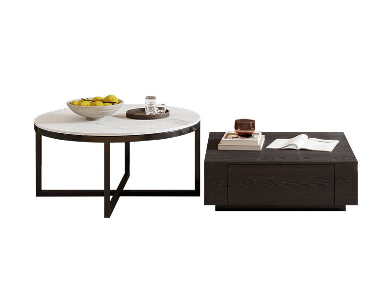 洛萨 极简 岩板面+碳素钢脚 0.8米组合茶几