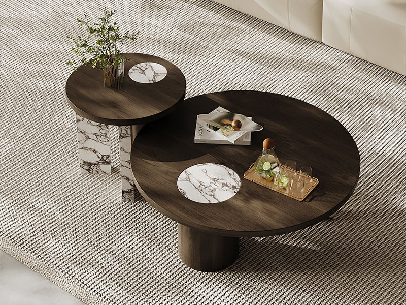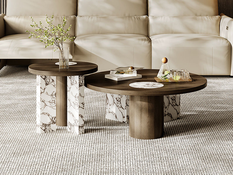 贝斯solo 设计师 网红 极简 大理石贴纸+纤维板贴木皮工艺 0.9米组合茶几