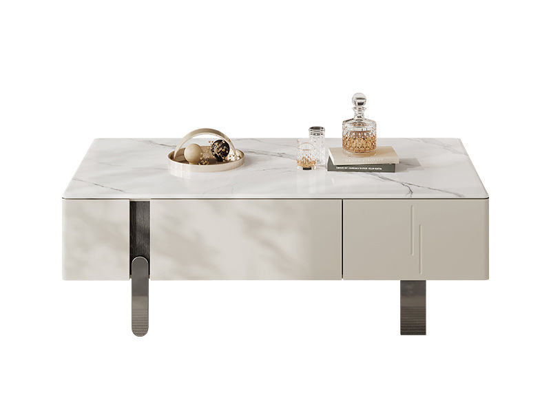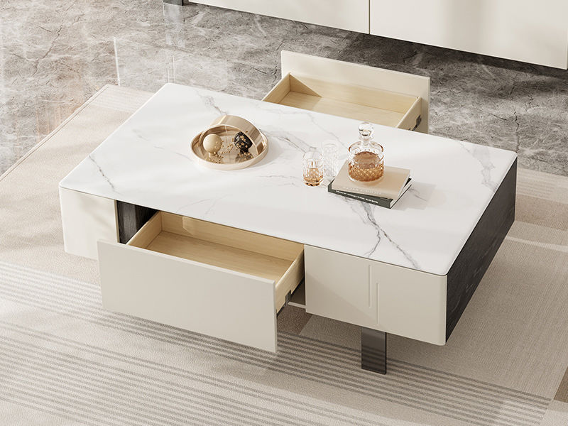 贝斯solo 设计师 网红 极简 E1级板材+岩板+钢化玻璃 0.8米组合茶几