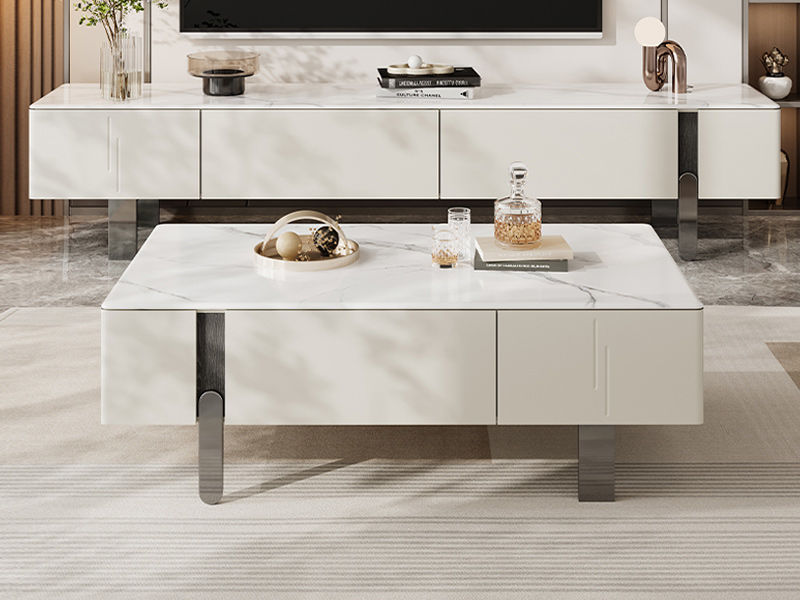贝斯solo 设计师 网红 极简 岩板+烤漆柜体 0.85米组合茶几¥9586