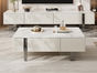 贝斯solo 设计师 网红 极简 白色岩板+五金铁黑色喷砂+环保纤维板 1.1米茶几