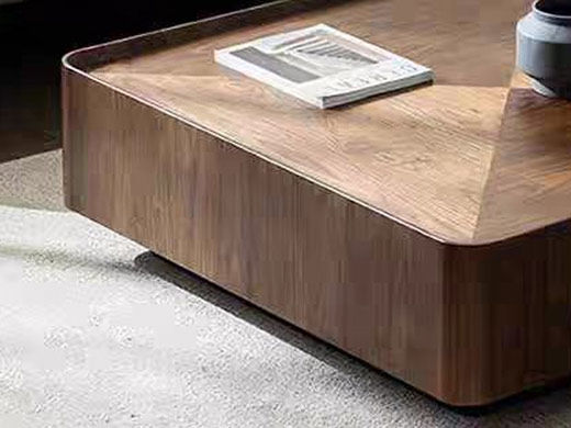 贝斯solo 设计师 网红 极简 中纤板+胡桃色贴木皮+2抽屉 0.9米茶几