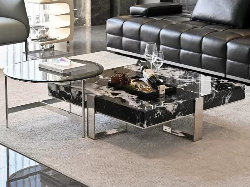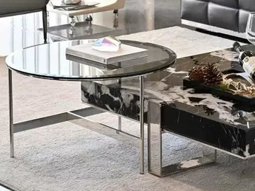 贝斯solo 设计师 网红 极简 不锈钢+大理石贴纸+ 钢化玻璃 1米茶几