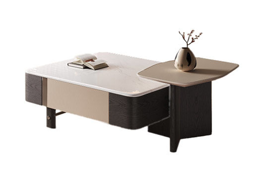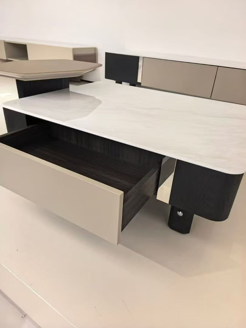 Milos米洛斯 极简 天然烟熏木饰面 天然大理石面 E1级高纤板 环保水性漆 碳素钢金属烤漆脚 1.38米茶几¥14371