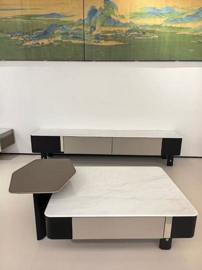 甄品家具 极简 中纤板烤漆柜体+芬迪白微晶石 0.95米组合茶几