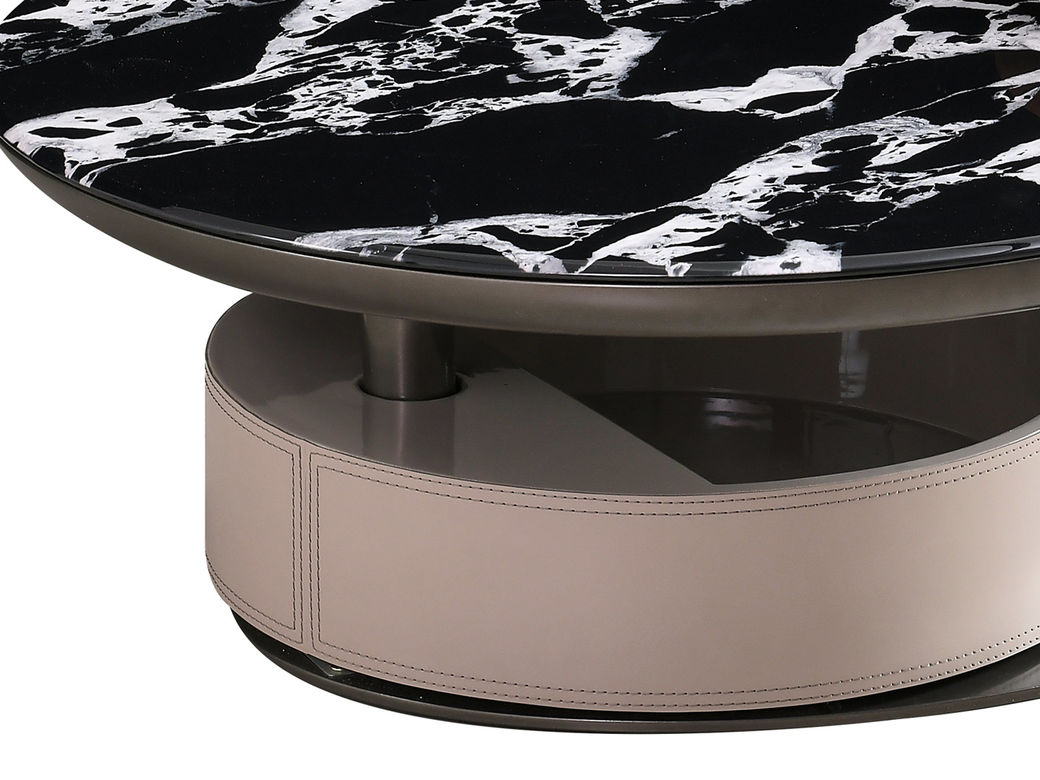 皇朝家居 现代极简 大理石+碳素钢+环保板+马鞍皮 圆形 1.25米茶几