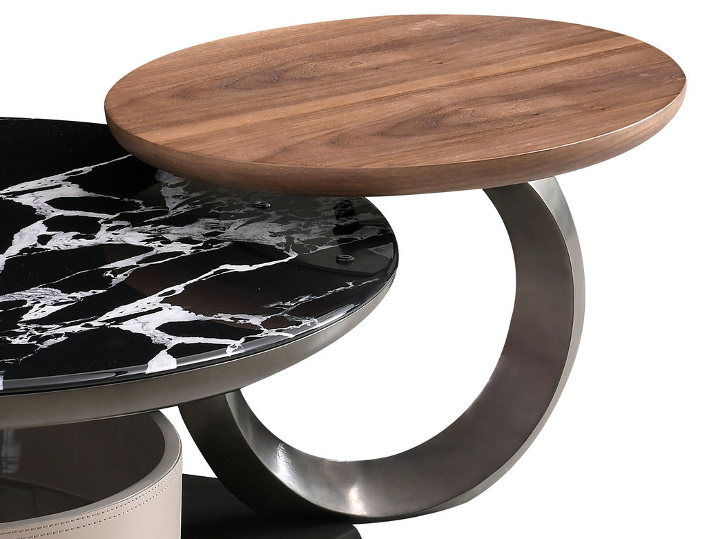 皇朝家居 现代极简 8MM微晶石面+E1级板贴木皮+大理石贴纸 圆形 0.89米大圆几