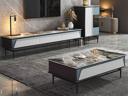 B系优选 现代简约 E1中纤板+多层实木板+天然木皮+静音缓冲导轨+碳素钢五金+岩板+环保油漆 1.3米茶几