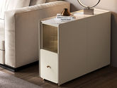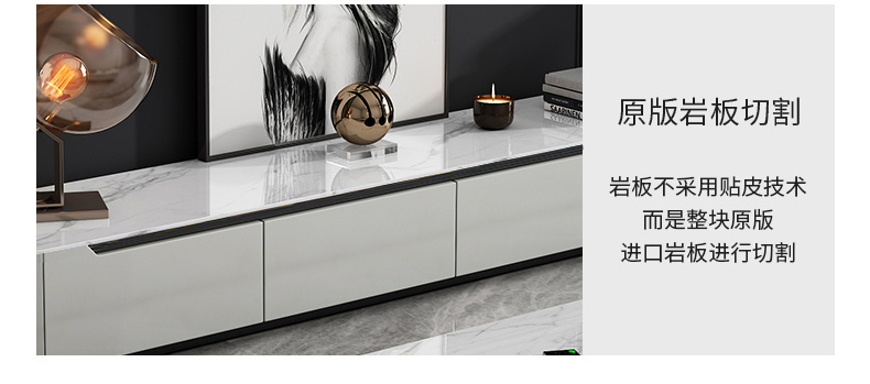 B系优选 现代简约 亮光岩板+亮光烤漆柜子 钛金五金底架+实木抽屉 卡其色 1.3米茶几¥2330