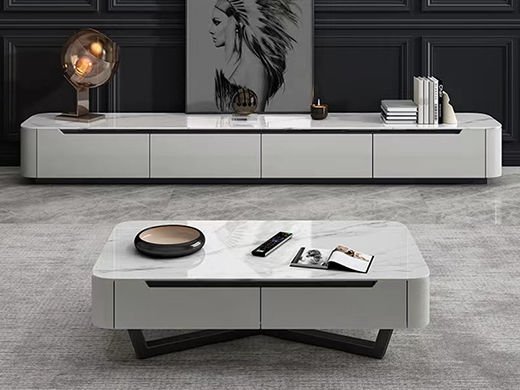 B系优选 现代简约 E1中纤板+多层实木板+天然木皮+静音缓冲导轨+碳素钢五金+岩板+环保油漆 1.3米茶几