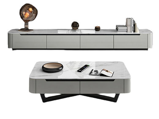 B系优选 现代简约 E1板材高级亮光灰烤漆,实木抽屉+亮光雪山石岩板面+五金脚 1.3米茶几