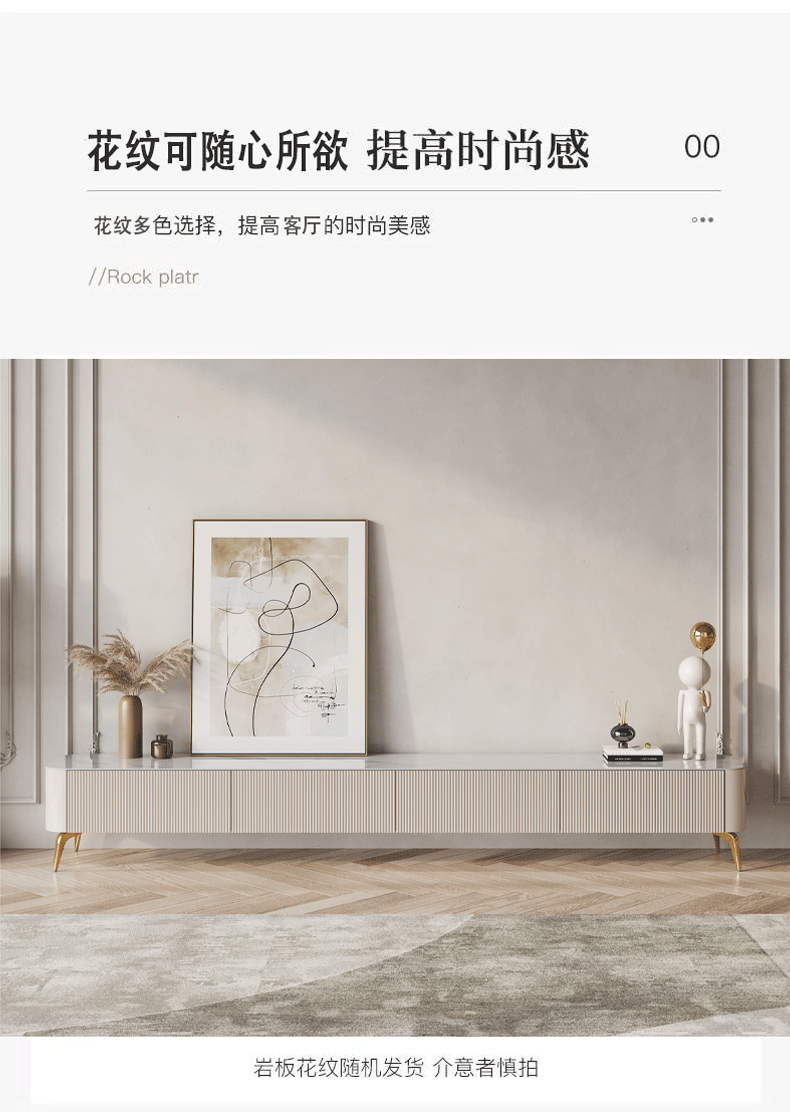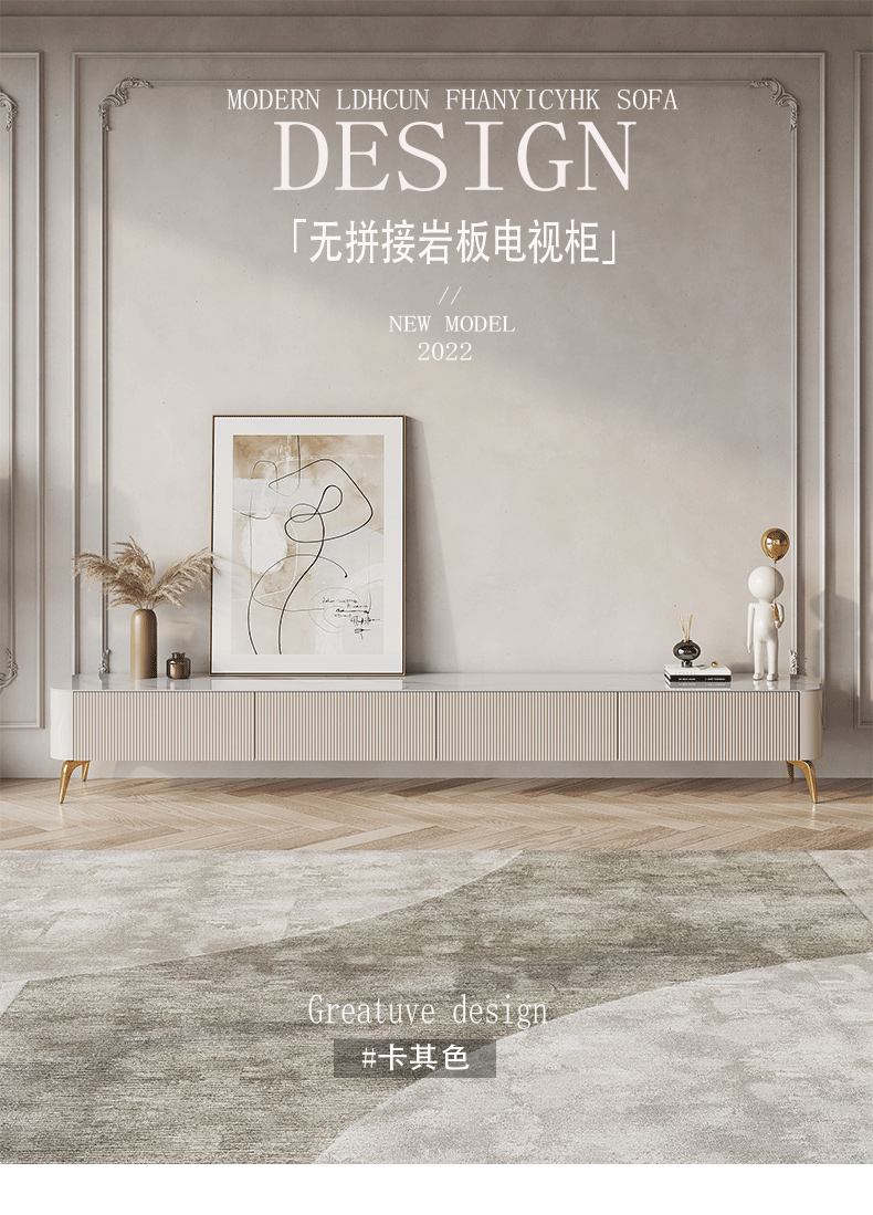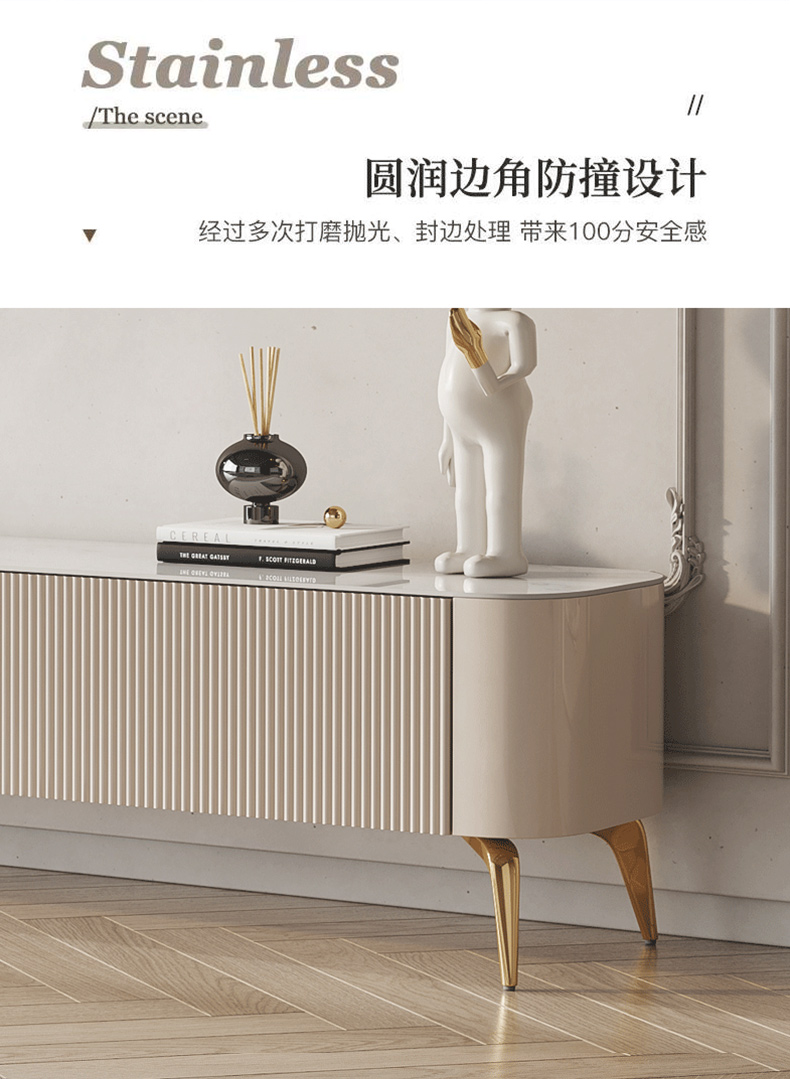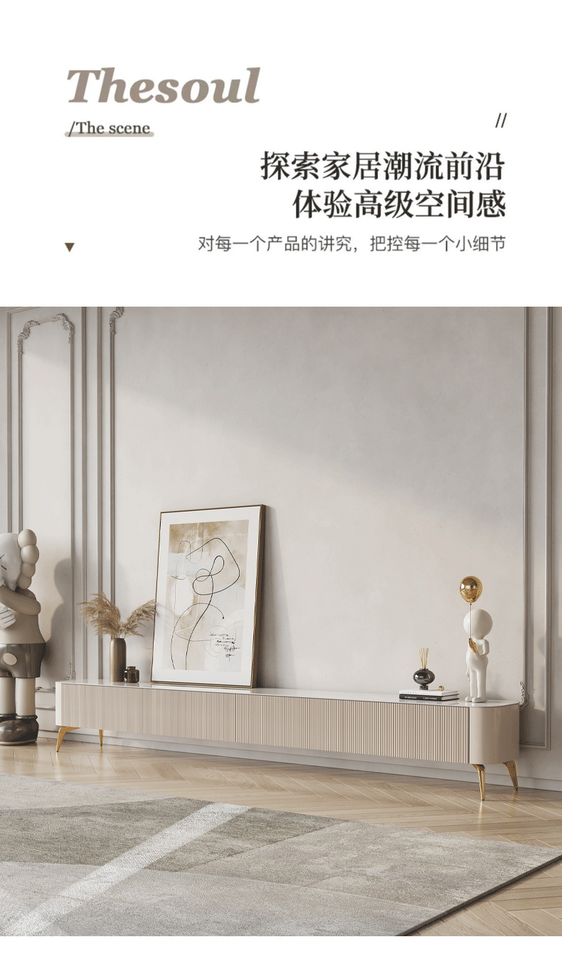 B系优选 现代简约 亮光岩板+亮光烤漆柜子 钛金五金底架+实木抽屉 卡其色 1.3米茶几¥2330