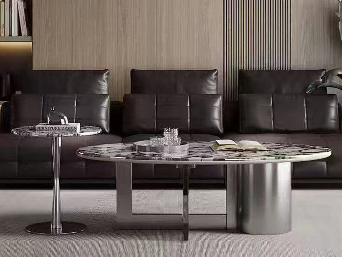 维利品尚 现代简约 大理石台面+碳素钢底架+中古风木纹果盘 1.0茶几¥3386