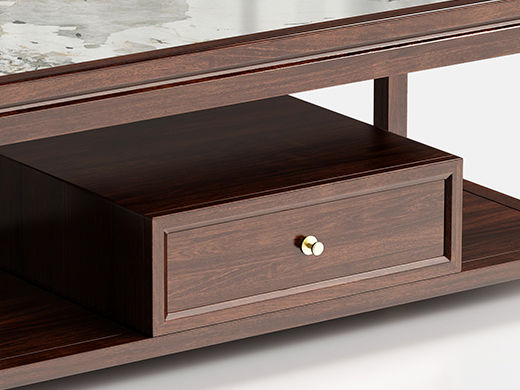 美檀家居 新中式 进口黑檀木+多层实木板+电镀五金+静音缓冲导轨 黑檀色 1.4米茶几¥8073
