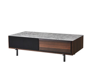 缔造 极简 6厘岩板+E1级密板板贴尤加利木皮+烤漆面+不锈钢电镀灰钛脚 1.22米茶几
