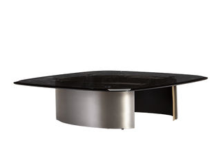 缔造 极简 黑玫瑰天然石材+ 不锈钢电镀灰钛拉丝框架+底板+8厘灰玻 0.92米茶几