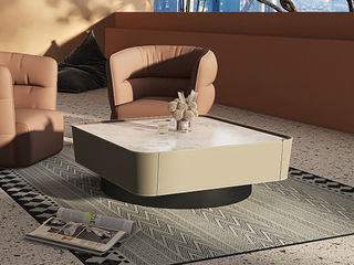 缔造 极简 大象白天然石面+ 碳素钢喷哑黑色脚 1米茶几