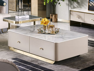 拉斐尔 轻奢 多层实木板+大理石+电镀不锈钢五金+烤漆 1.2米茶几