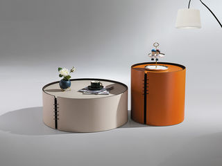 小红书系列 现代简约 碳素钢脚架+马鞍皮饰面+岩板台面 0.45米组合茶几