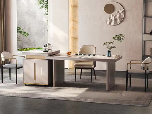 上铭轩 现代简约 电镀不锈钢+岩板+E1密度板+多层实木板+烤漆+全自动电磁炉+茶具 图片色 1.4米茶台(不含椅子)¥2304