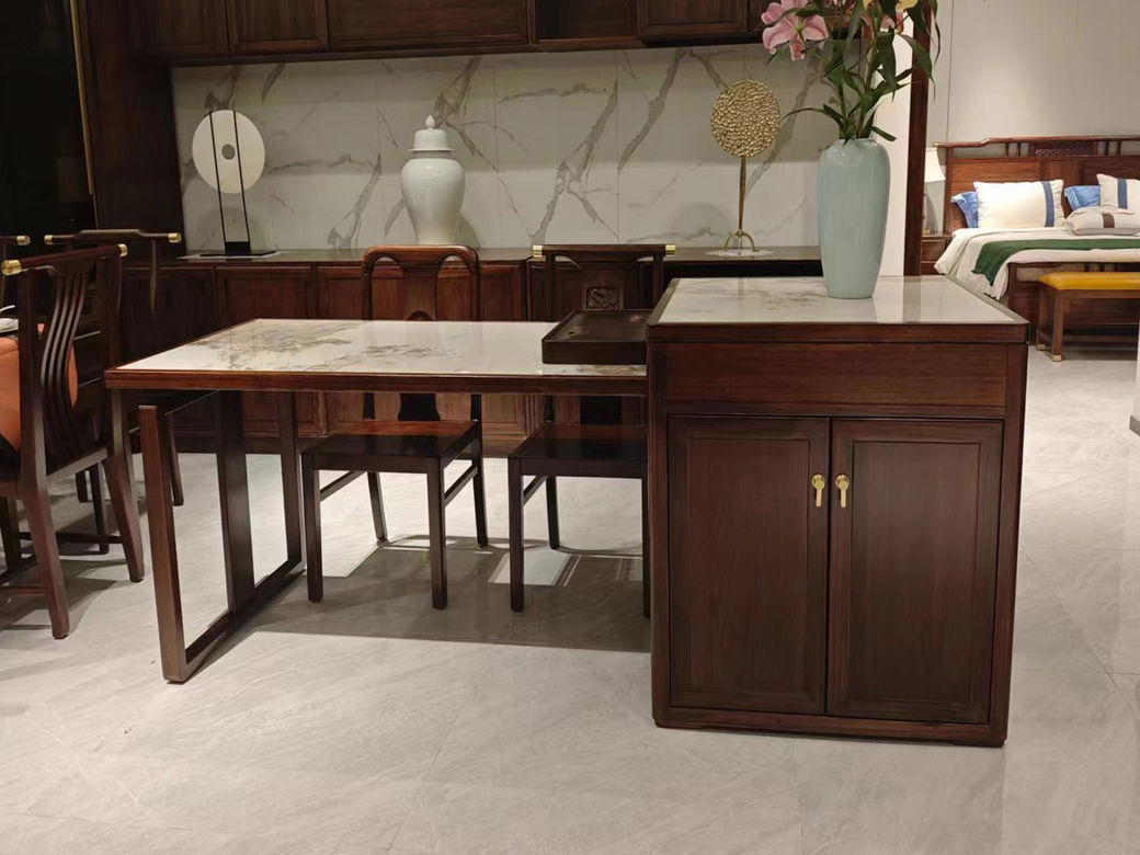 美檀家居 新中式 进口黑檀木+多层实木板+岩板+静音缓冲导轨+电磁炉 黑檀色 中岛台 茶台