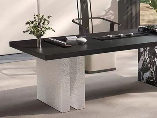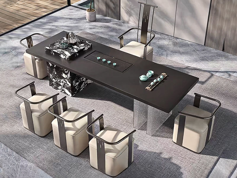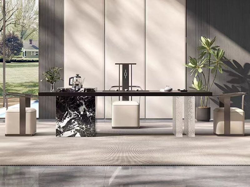 上铭轩 轻奢 香奈儿岩板+E1中纤板+碳素钢五金+电茶炉+一桌三椅 1.8米茶书桌¥5645