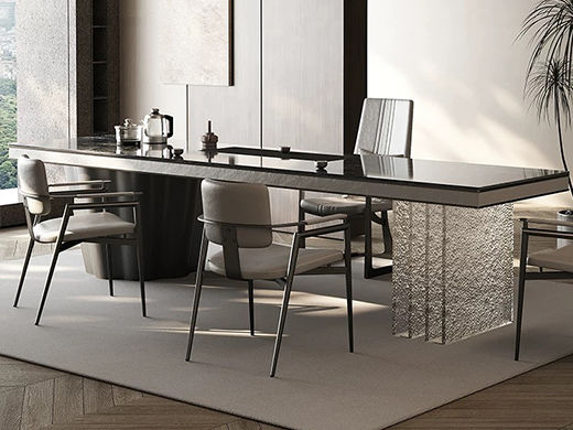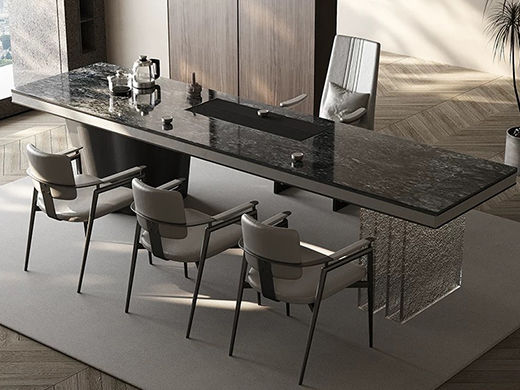 上铭轩 轻奢 香奈儿岩板+E1中纤板+碳素钢五金+电茶炉+一桌三椅 1.8米茶书桌¥5645