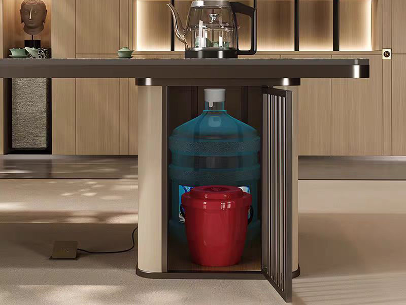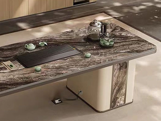 上铭轩 轻奢 香奈儿岩板+E1中纤板+碳素钢五金+电茶炉+一桌三椅 1.8米茶书桌¥7565