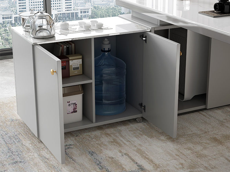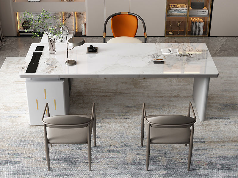 上铭轩 轻奢 香奈儿岩板+E1中纤板+碳素钢五金+电茶炉+一桌三椅 1.8米茶书桌