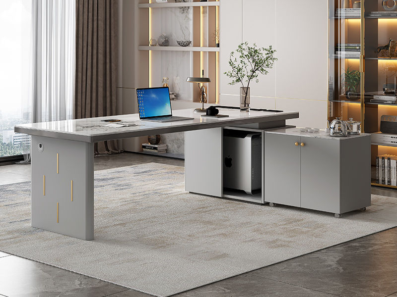上铭轩 轻奢 岩板+E1中纤板+多层实木板+碳素钢五金+电茶炉(不含椅子茶具) 1.8米茶书桌