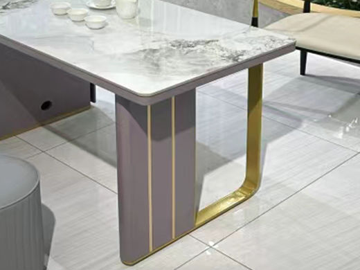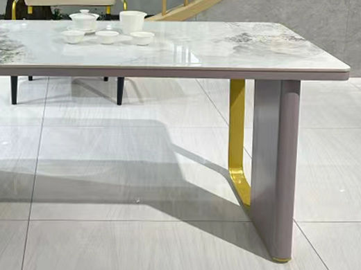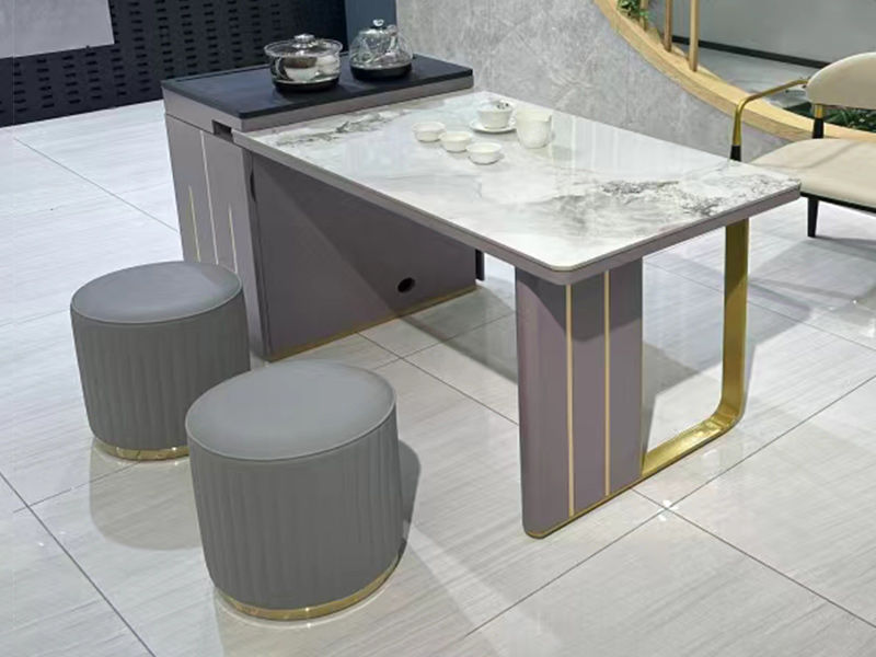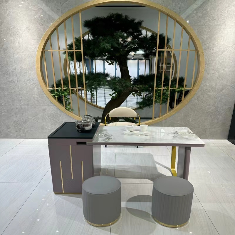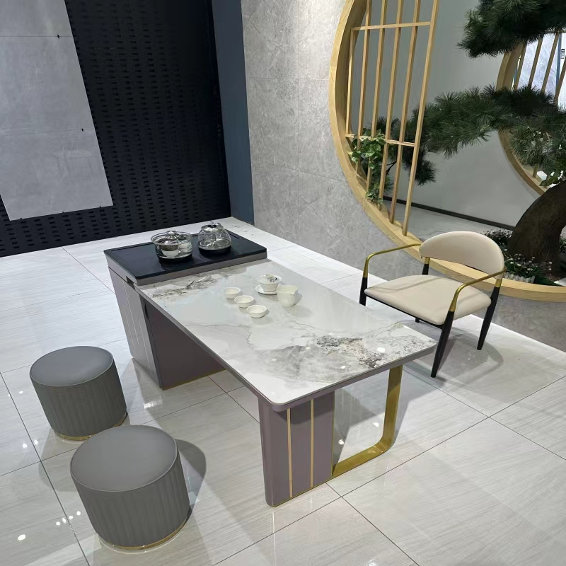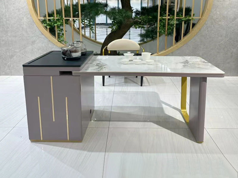 上铭轩 轻奢 香奈儿岩板+E1中纤板+碳素钢五金+电茶炉+一桌三椅 1.8米茶书桌¥5645