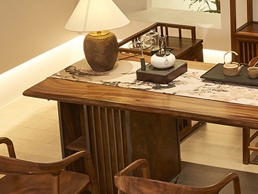 上铭轩 极简 50MM实木多层板+外贴天然木皮面板深胡桃/开放黑+嵌入式茶盘+550*600实木多层板储物柜+外贴岩板(/威尼斯棕)可置放饮水桶和废水桶+200*600亚克力脚架+全自动智能抽水茶艺炉+赠臻品茶具、高档茶桶等 岛台 茶台
