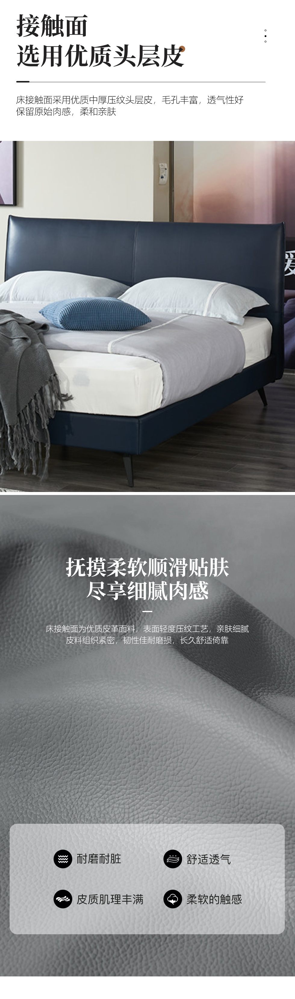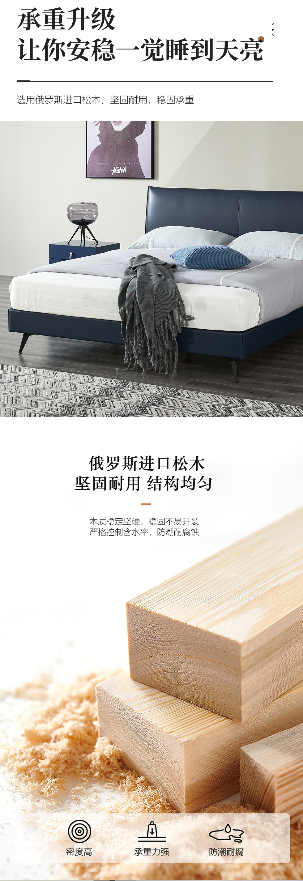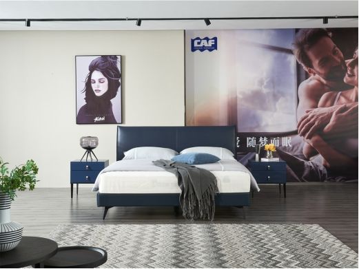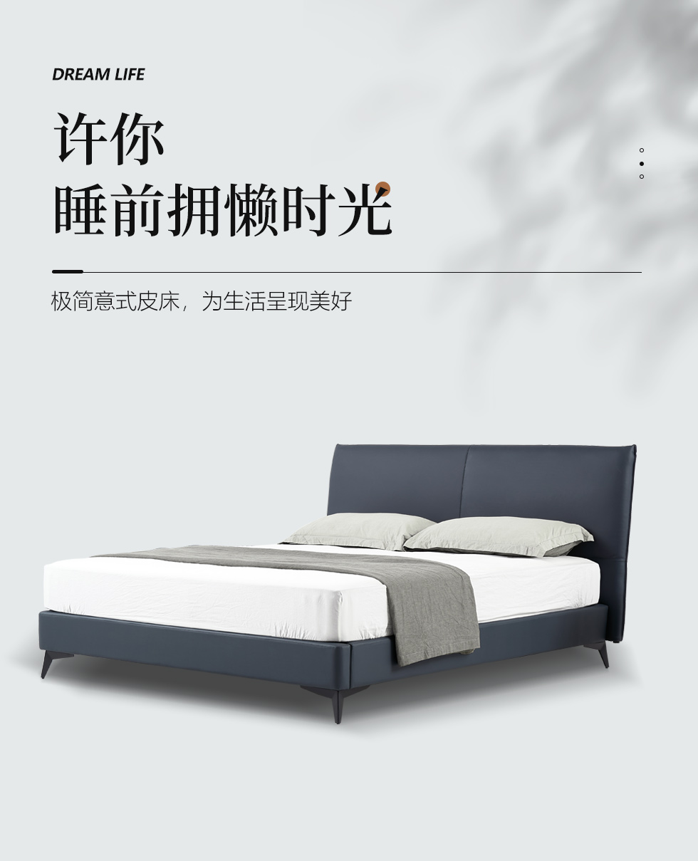希奥 极简 俄罗斯进口松木+接触面真皮+PVC+多层实木板+实木排骨架 蓝色 1.8米皮床